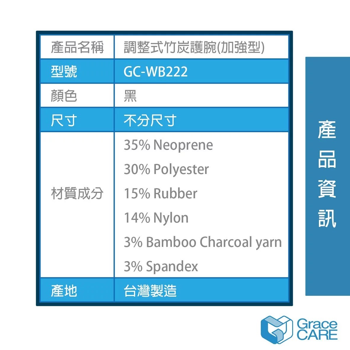 Grace CARE 竹炭護腕(加強型) 單盒一入(非一雙) 工作護腕 手指仍可活動,非套大拇指款 台灣製造