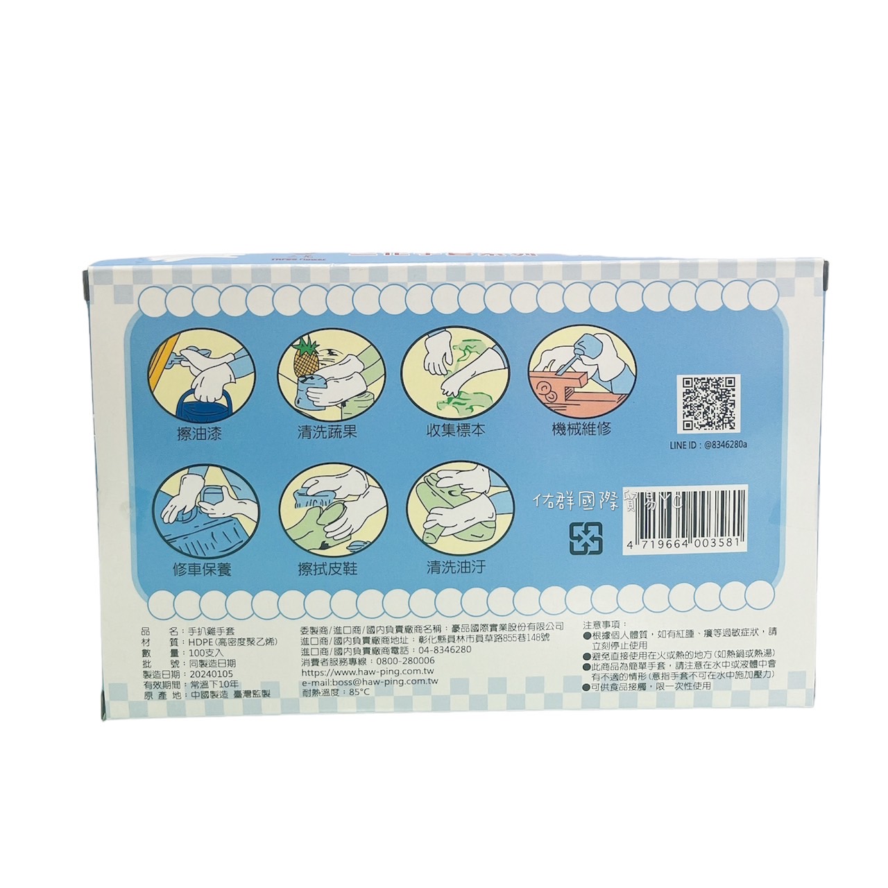 ● 一次性衛生PE手套讓您保持手部皮膚
