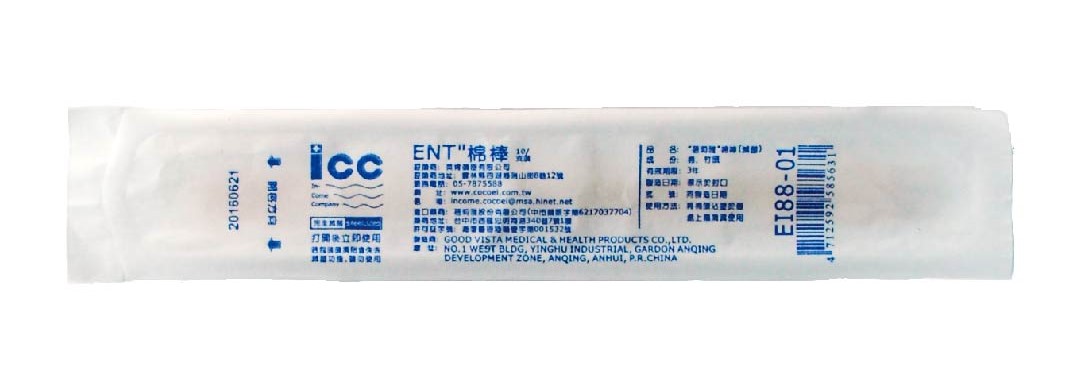 一袋100包 一箱20袋2000包 3吋單頭棉棒10支入 臺灣製造 滅菌完全 100%純棉 外用於採樣塗藥清洗等 注意事項: 請用於淺層傷口之護理 滅菌產品包裝損壞時不得使用 禁止重複使用 衛署醫器製壹字第003790號