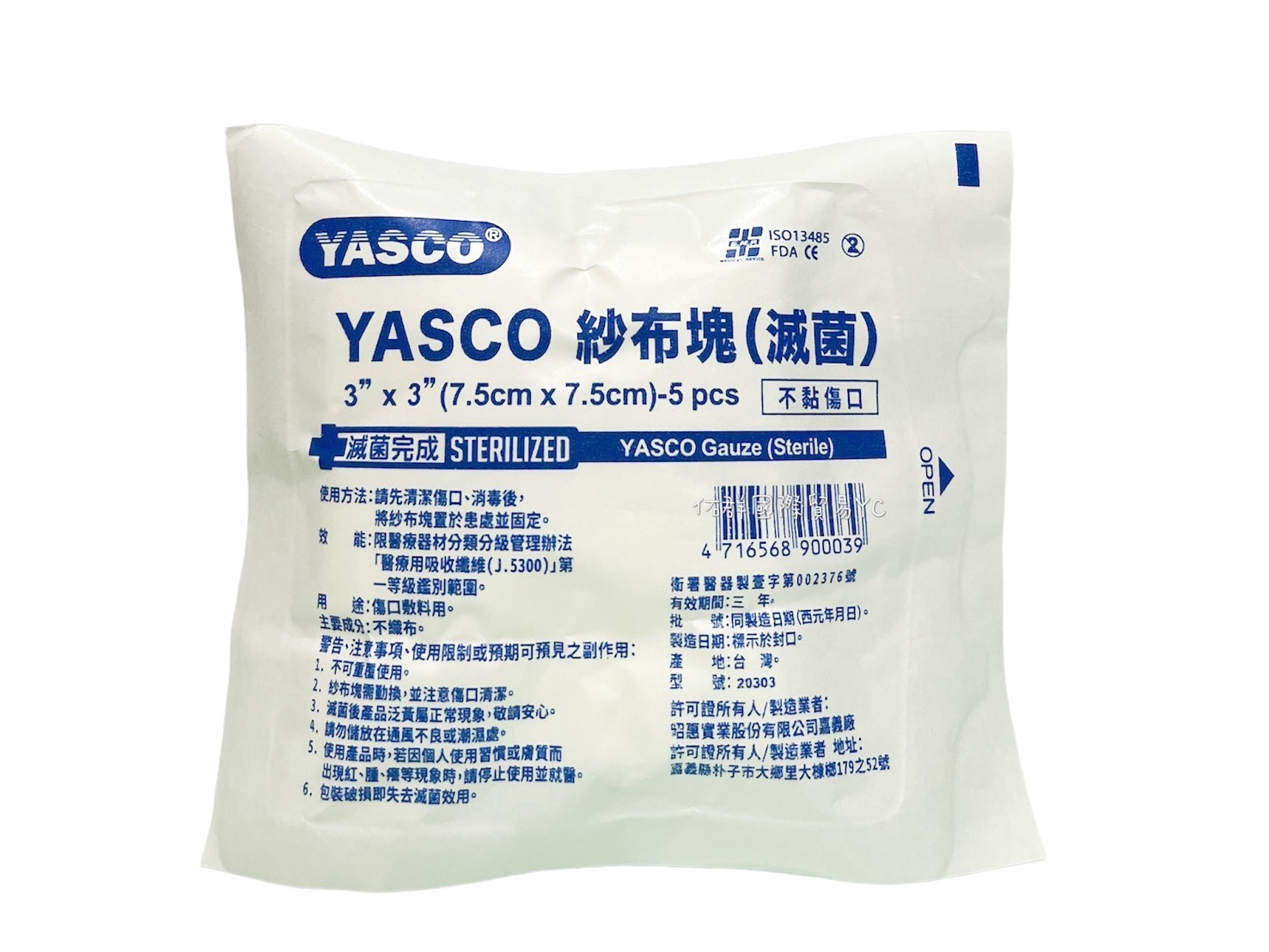 一袋100包 一箱1000包 成分:不織布 規格: 2X2”/10片入(5*5cm) 3X3”/5片入(7.5*7.5cm) 4X4”/3片入(10*10cm) 原產地:台灣 有效日期:製造日期會因庫存批次而有所不同,請詳見產品包裝標示有效期間或保存期限 。