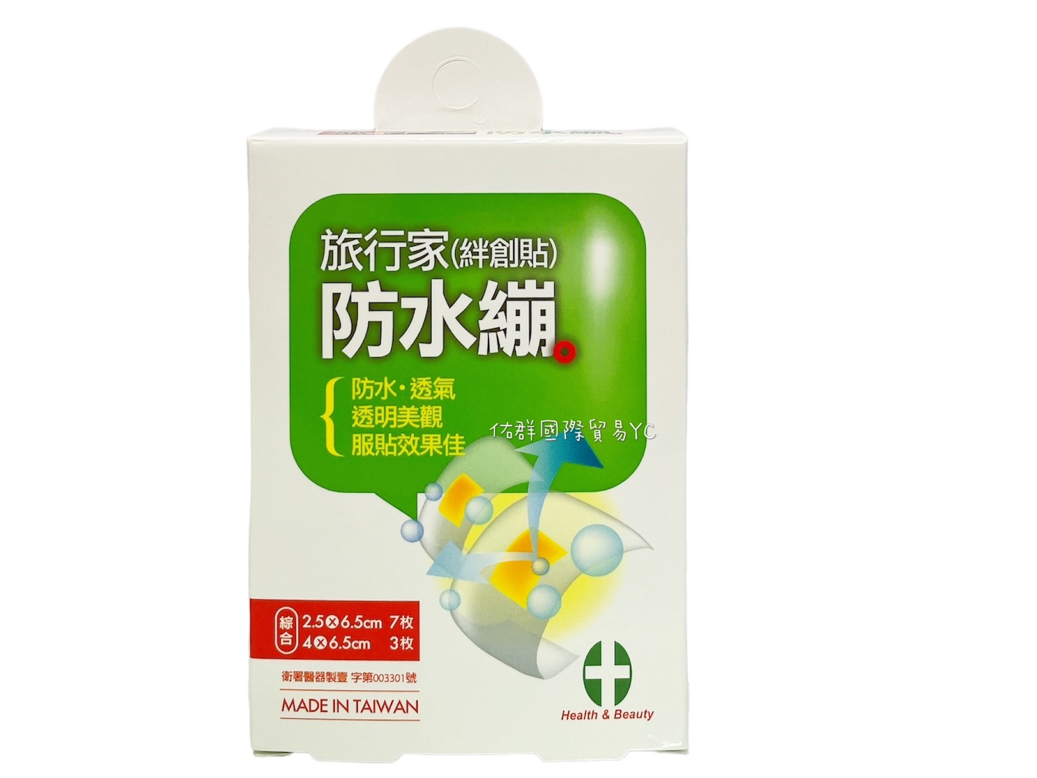 特性:包覆傷口,溫和舒適,完全防水 用途:保護傷口部位 注意事項:使用本產品,如有紅腫,疼痛,過敏或不適,請立即停止使用並就醫診治 產地:台灣