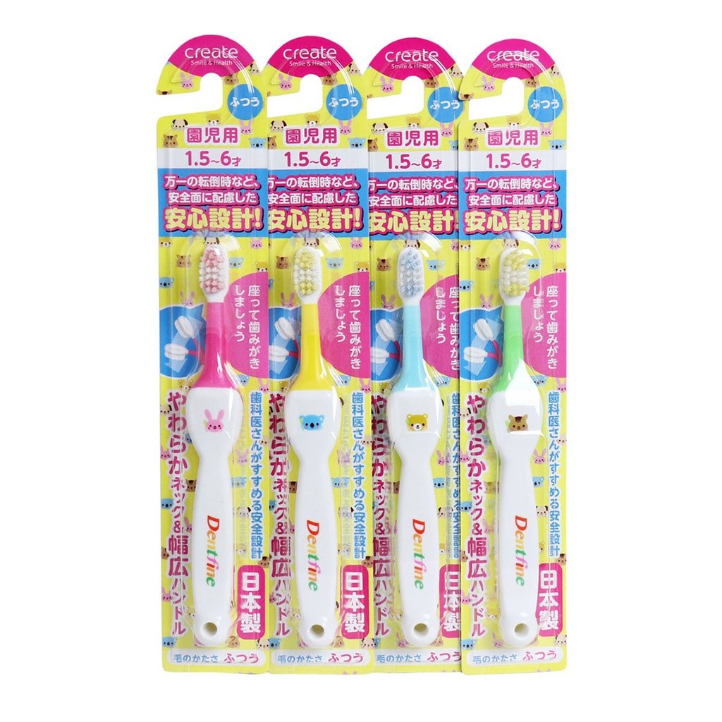 日本 株式会社クリエイト 日本製 Dentfine 中性刷毛 兒童牙刷(不挑色) 安全設計,柔軟彎曲頸部與寬手柄 適用幼兒園兒童 1.5-6歲 中性刷毛,內齒槽可清潔刷洗