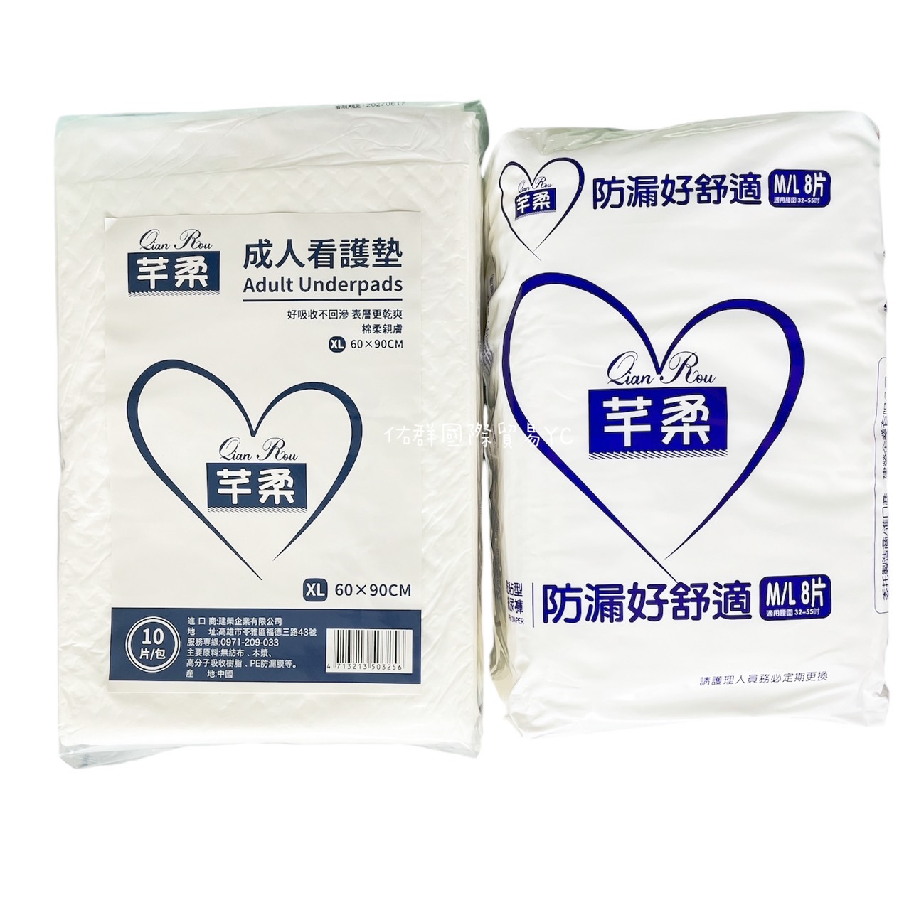 芊柔黏貼式成人紙尿褲M/L(適用腰圍32-55吋) 成分: 表層-不織布 吸收層-棉狀紙漿,高分子吸收體 防水外層-聚乙烯(PE防漏膜) 膠帶-可重復黏著膠帶 規格:8片裝 製造日期:見包裝袋 保存期限:三年(室溫) 保存條件:避免高溫,潮濕 注意事項: 1.請適時更換乾水淨的紙尿褲,保持皮膚乾爽 2.避免膠帶與皮膚接觸,或沾到爽身粉