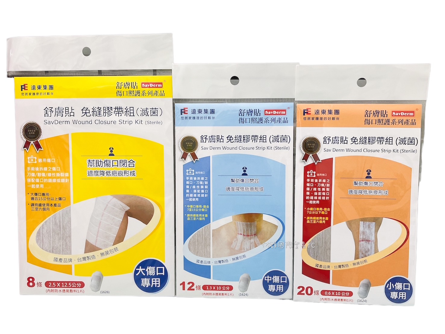 舒膚貼 免縫膠帶組(滅菌)組係由複合不織布與醫療級低敏感壓膠組成。
