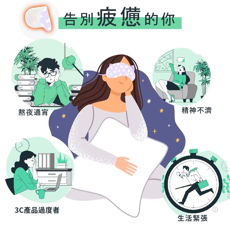 ★舒緩 : 舒緩眼部周圍緊繃的肌肉 ★亮眼 : 促進循環、告別熊貓眼 ★助眠 : 溫暖呵護讓你一夜好眠